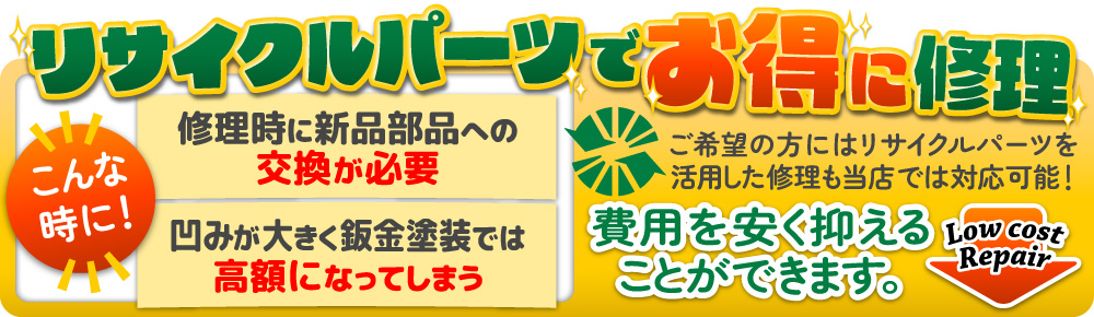 各務原市・岐阜市・羽島郡(岐南町・笠松町)・関市・犬山市エリアのお客様のご要望に合せてキズ直し、鈑金・修理のお支払い方法をお選び頂けます。