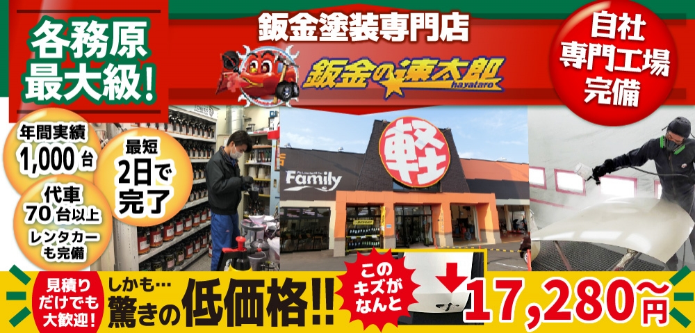 「鈑金の速太郎」の板金・修理工場では、 最新の設備と環境に優しく仕上がりも良い水性塗料を使用して、板金・修理を業界最高の品質で仕上げます。